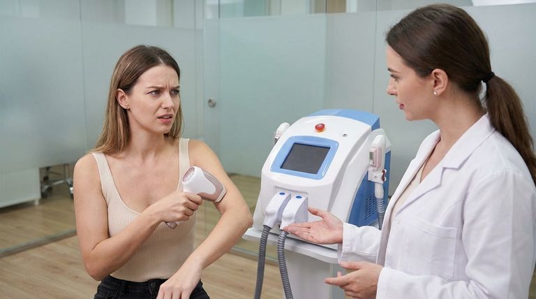- 毛が薄い、または肌が濃い場合: IPLがあなたにとって最良の技術ではないかもしれないと認識してください。アレキサンドライト(明るい肌向け)やNd:YAG(濃い肌により安全かつ効果的になるように特別に設計されている)などのレーザー治療について問い合わせてください。